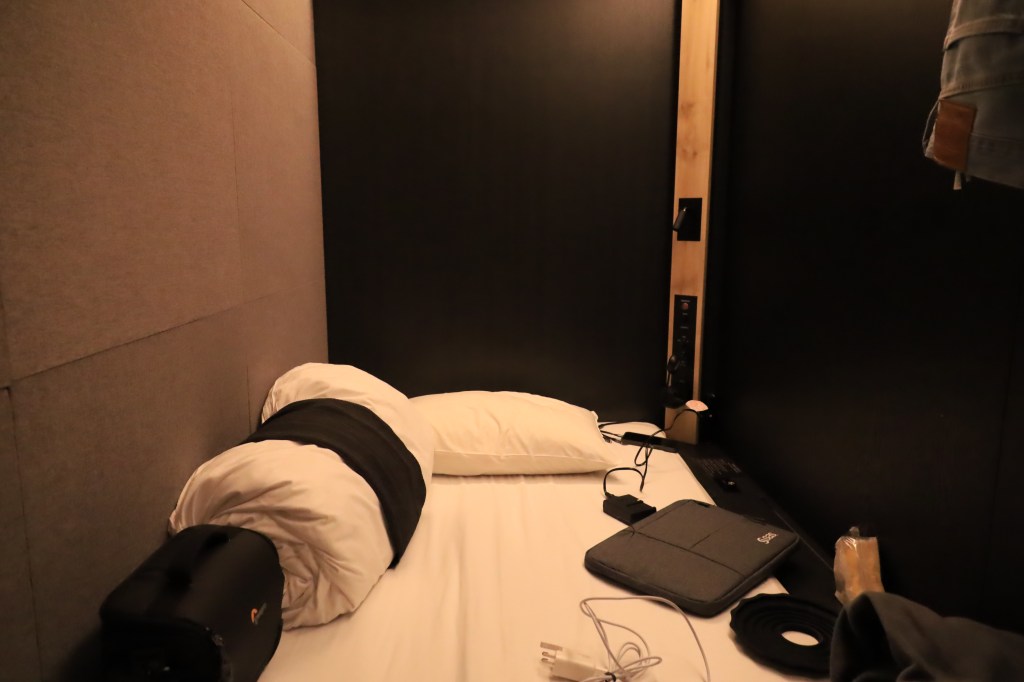 I woke up with the sound of a zip being undone slowly. One of my roommates at the capsule hotel (there were 6 cubicles in my room) was leaving very early and didn’t want to disturb the rest of us strangers. I could still hear him as he was trying to pack up slowly. I thought it’s much better to do/undo your zip as quick as you can, generating a shorter sound. Having a persistent sound was the reason why I woke up. I couldn’t sleep after, so I decided to pack up, shower, and leave.